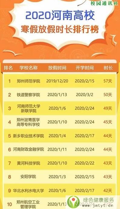 近日,河南省教育厅公布了“2020河南高校寒假放假时长排行榜”,其中有的高校寒假放57天。那么,为什么会放这么多天?知道真相的我实名羡慕!